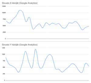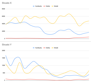 Google Analyticsin keräämiä kävijämääriä tarkasteltaessa tilanne näyttää edelleen hyvältä. Käyntejä on edelleen merkittävästi, vaikka evästeitä onkin estetty aiempaa enemmän.