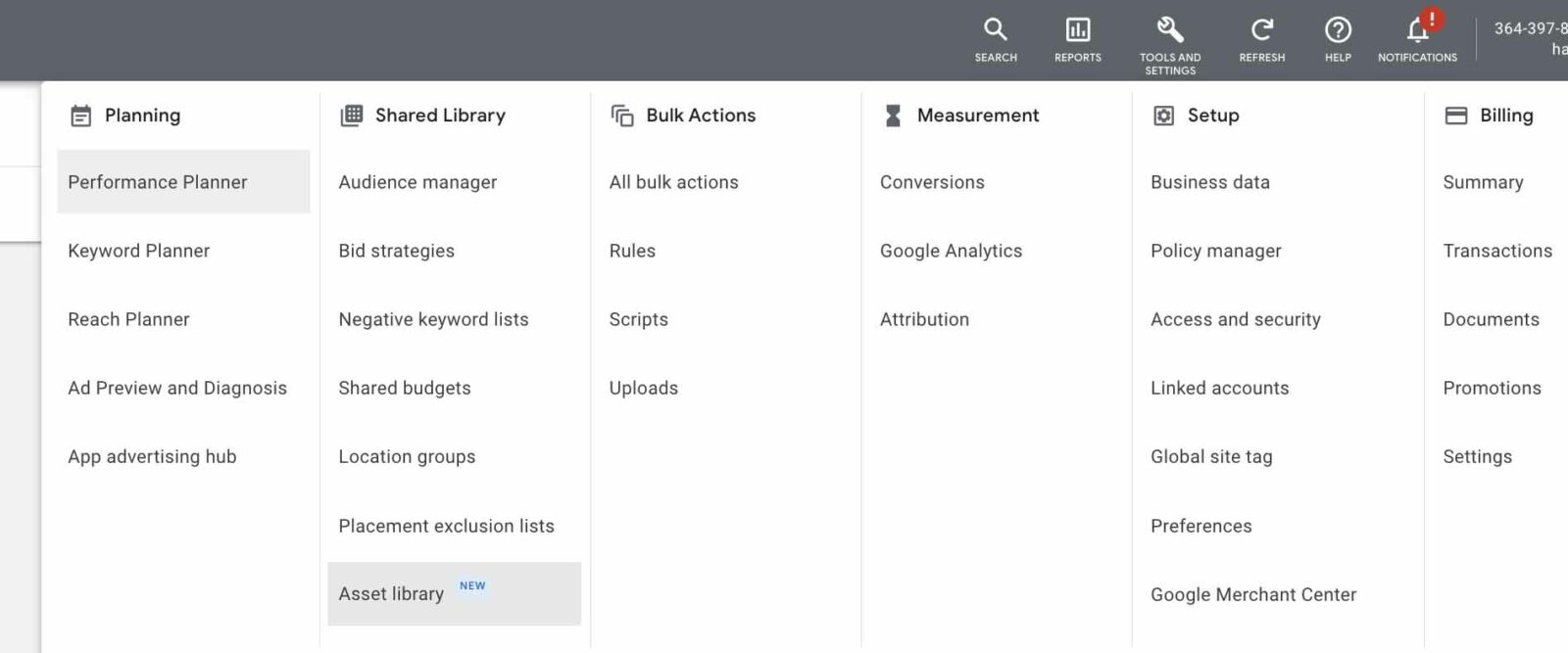 Google julkisti jälleen toukokuussa uusia ominaisuuksia vuosittaisessa Google Marketing Livessa. Eräs näistä uutuuksista oli Google Adsin sisältökirjasto (Asset Library). Kirjastoon voi tallettaa tilitasolla sisältöjä ja käsitellä niitä sieltä käsin. Sisältökirjastossa pääsee myös luomaan Youtube-videoita omista kuvista ja teksteistä valmiiden mallipohjien avulla.