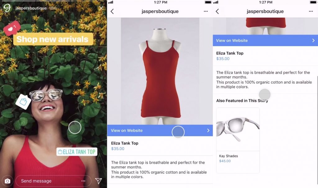 Verkkokauppiaan onnenpäivä: nyt voit tehdä Storiesiin mainoksia, joihin on lisätty tuotetarra. Tarran kautta käyttäjä pääsee selaamaan näppärästi tuotteen tietoja ja siirtymään halutessaan sivustolle.
