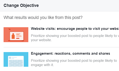 Facebook on hiljattain kehittänyt boostaustoimintoa. Nykyään kampanjan tavoitteeksi on mahdollista valita joko sitoutuminen tai sivustossa käynnit (mikäli julkaisusi sisältää linkin). Aiemmin Facebook optimoi boostatut postaukset aina julkaisuihin sitoutumisen kannalta. Valitsemalla tavoitteeksi sivustossa käynnit Facebook optimoi mainoksesi näkymään niille henkilöille, jotka todennäköisimmin käyvät sivullasi. Tämä voi toimia blogin kanssa, mutta mikäli haluat, että markkinointiviestisi nähnyt ihminen esimerkiksi ostaa jotain verkkokaupastasi, ei tämä kampanjan tavoite tuo välttämättä haluttuja tuloksia. Sen sijaan Mainostenhallinnassa voit valita tavoitteeksi konversiot. Kerro Mainostenhallinnalle, mitä haluat saada aikaan markkinoinnillasi ja saavutat todennäköisesti parempia tuloksia.