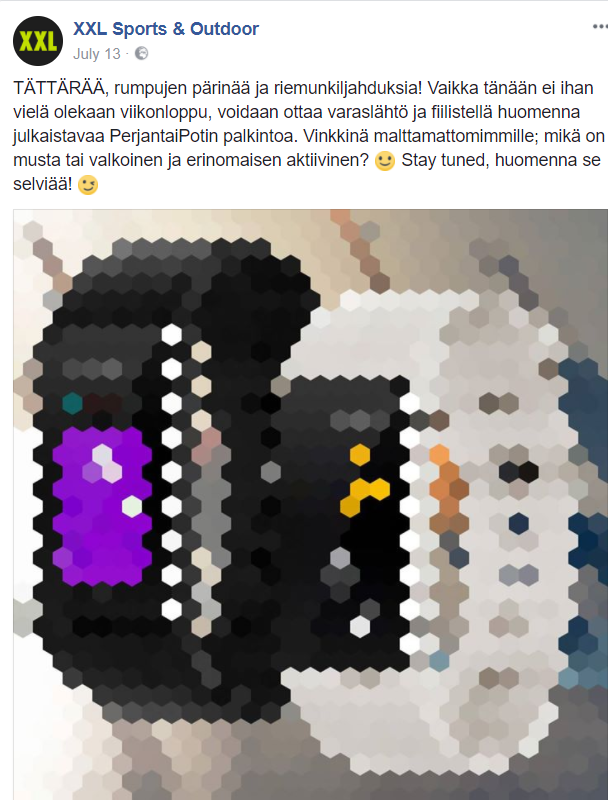 - Muista visuaalisuus. Päivitä verkkokauppasi kuvamaailma tai liikkeesi ilme Black Friday -aiheiseksi ja ohjaa verkkokaupan liikenne linkkien avulla mahdolliselle kampanjasivulle. Hyödynnä mainoksissa esimerkiksi sneak peak -kuvia kuten XXL: sumenna kuva ja pyydä arvaamaan mikä tuote tulee seuraavaksi tarjoukseen. Tai hyödynnä reaktioiden avulla äänestämistä ja kysy, minkä tuotteen asiakkaat haluavat Black Friday -tarjoukseen.