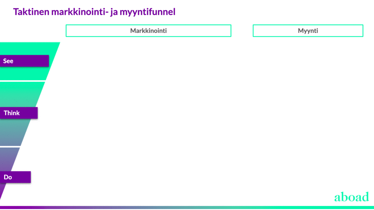 - Myynti ja markkinointifunnelien yhdistäminen ja yhteisten kontaktipisteiden määrittely