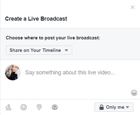 Bonuksena: voit myös testata livevideon kuvaamista ennen julkaisua omalla valitsemalla yleisöksi vain itsesi. Tämä toiminto on käytössä vain henkilökohtaisella Facebook-tilillä.