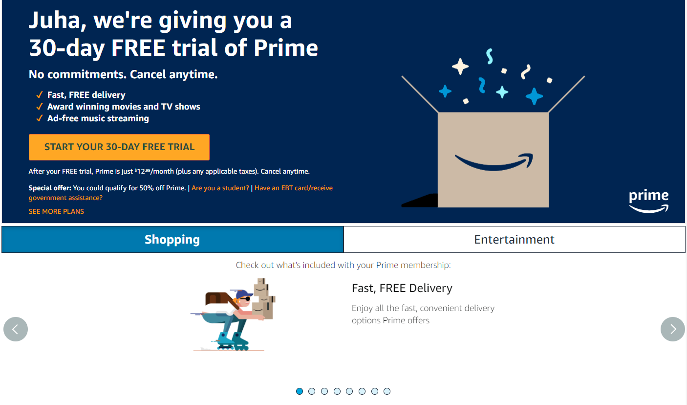 Amazonin kohdalla tästä osuu paljon Primeen. Amazon Prime pitää nimittäin sisällään (pääasiassa USA:n markkinoilla)