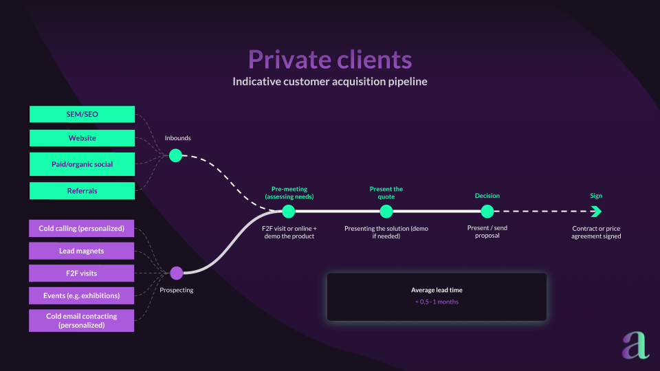 As noted before, the two different segments were found to behave totally differently in their sales and purchase processes. Therefore, it was crucial to understand the differences between the public and the private sector so marketing actions could be aligned to fully support the customer acquisition process in each of its steps. Also, we could recognize the differences in the expected length of the sales process, which allowed us to figure out where the quickest wins were expected.